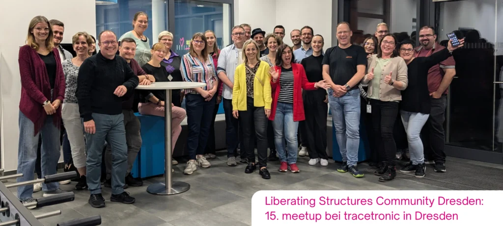 Du hast Lust, gemeinsam mit einer tollen Community richtig gute Methoden auszuprobieren? Dann komm gern in unsere Liberating Structures Community Dresden und zu einem unserer kostenfreien meetups. Wir üben in fröhlicher Runde, probieren uns aus und reflektieren, was für uns gut oder weniger gut funktioniert. Das macht immer richtig viel Freude. Und so kannst du Christiane und mich schon einmal genauer kennenlernen, denn gemeinsam organisieren und gestalten wir diese fröhlichen Treffen.