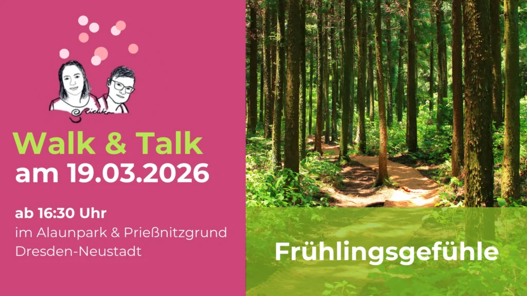 Wir gehen gemütlich durch den Prießnitzgrund, unterhalten uns mit Hilfe nützlicher Methoden und Impulse im Dialog oder in der großen Gruppe und teilen Gedanken, Ideen und manchmal Sorgen.